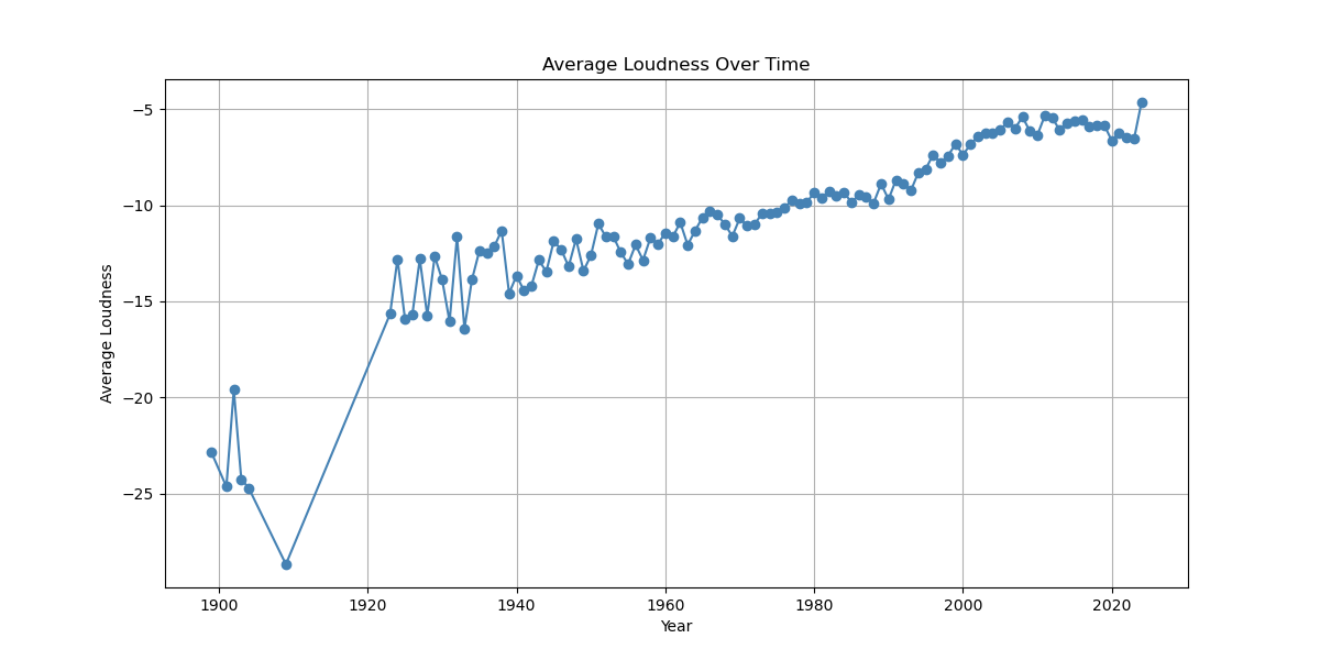 The data set used for this post consists of 15,150 classic hits from 3,083 artists, from around 1900 to 2023. Because they are taken from Spotify, they also contain a series of variables that describes the quality of the music, in terms of its things like its loudness, tempo, and energy, for example. With such data, we can see how popular music and its consumption have evolved over time.